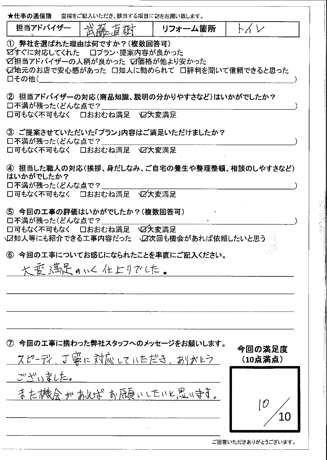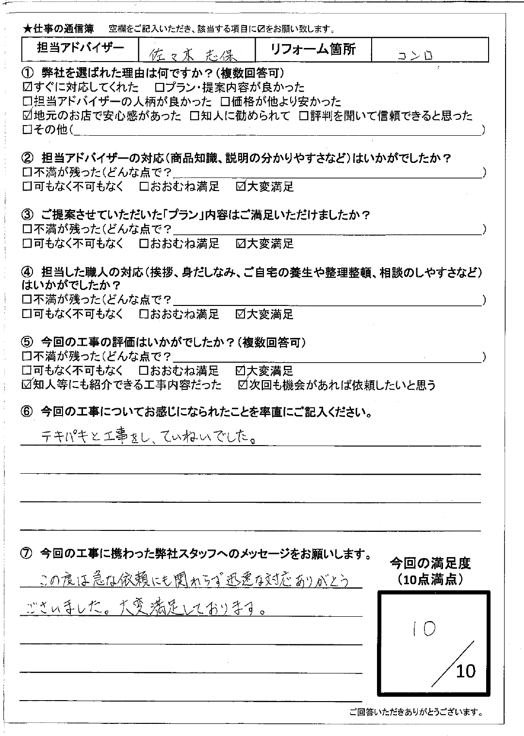 口コミ、アンケートにお答えいただいた皆さま、誠にありがとうございました。